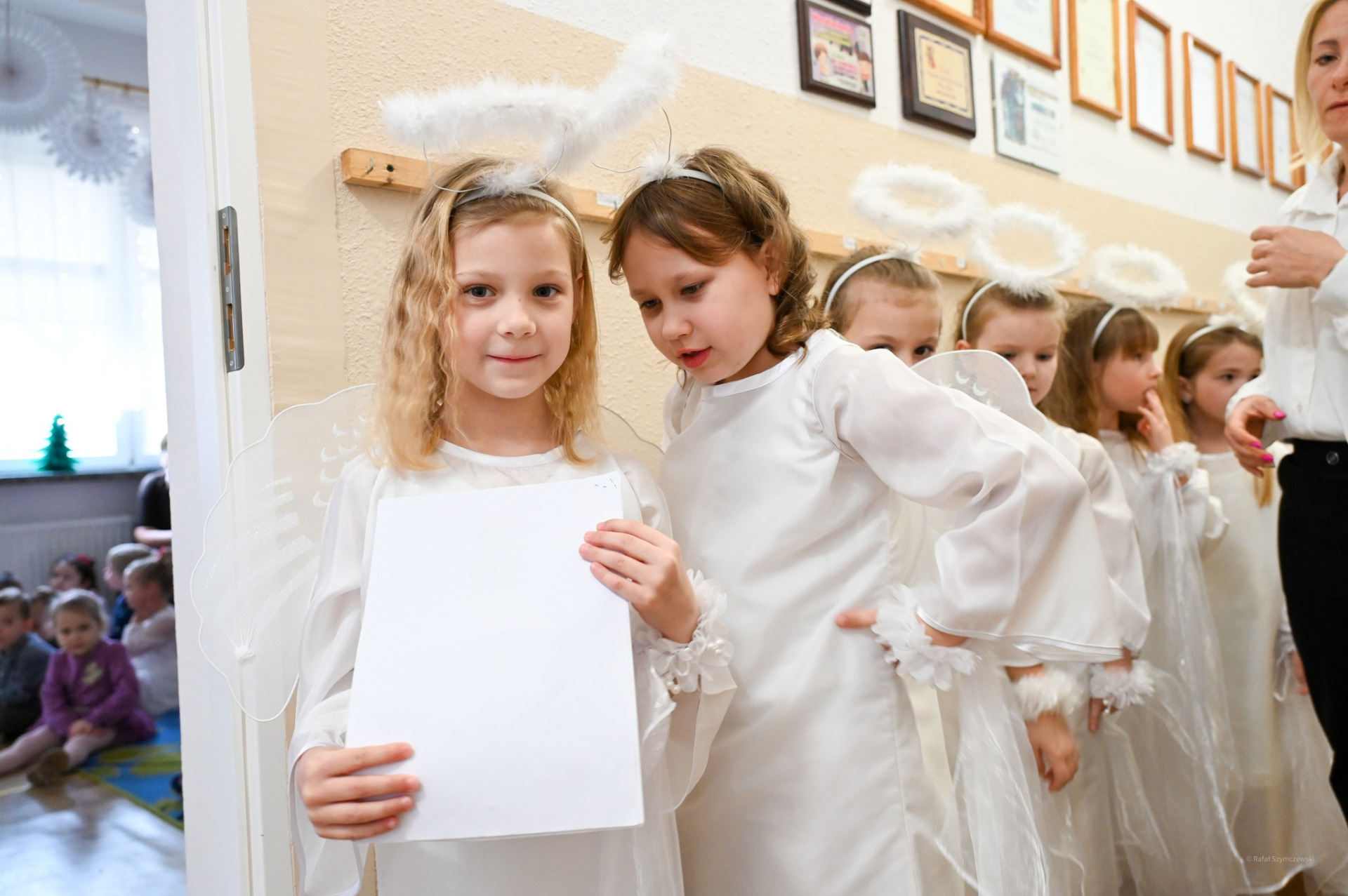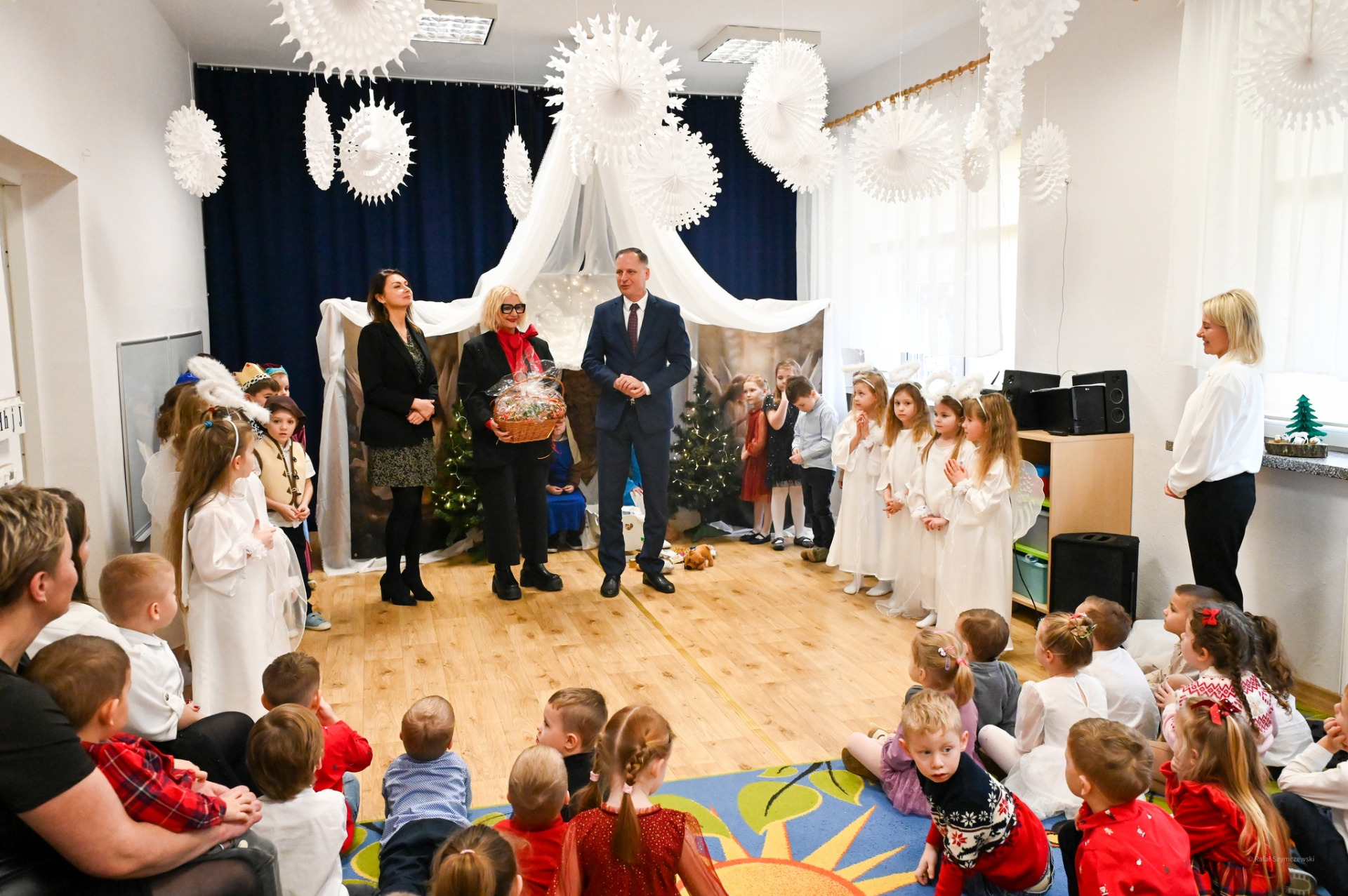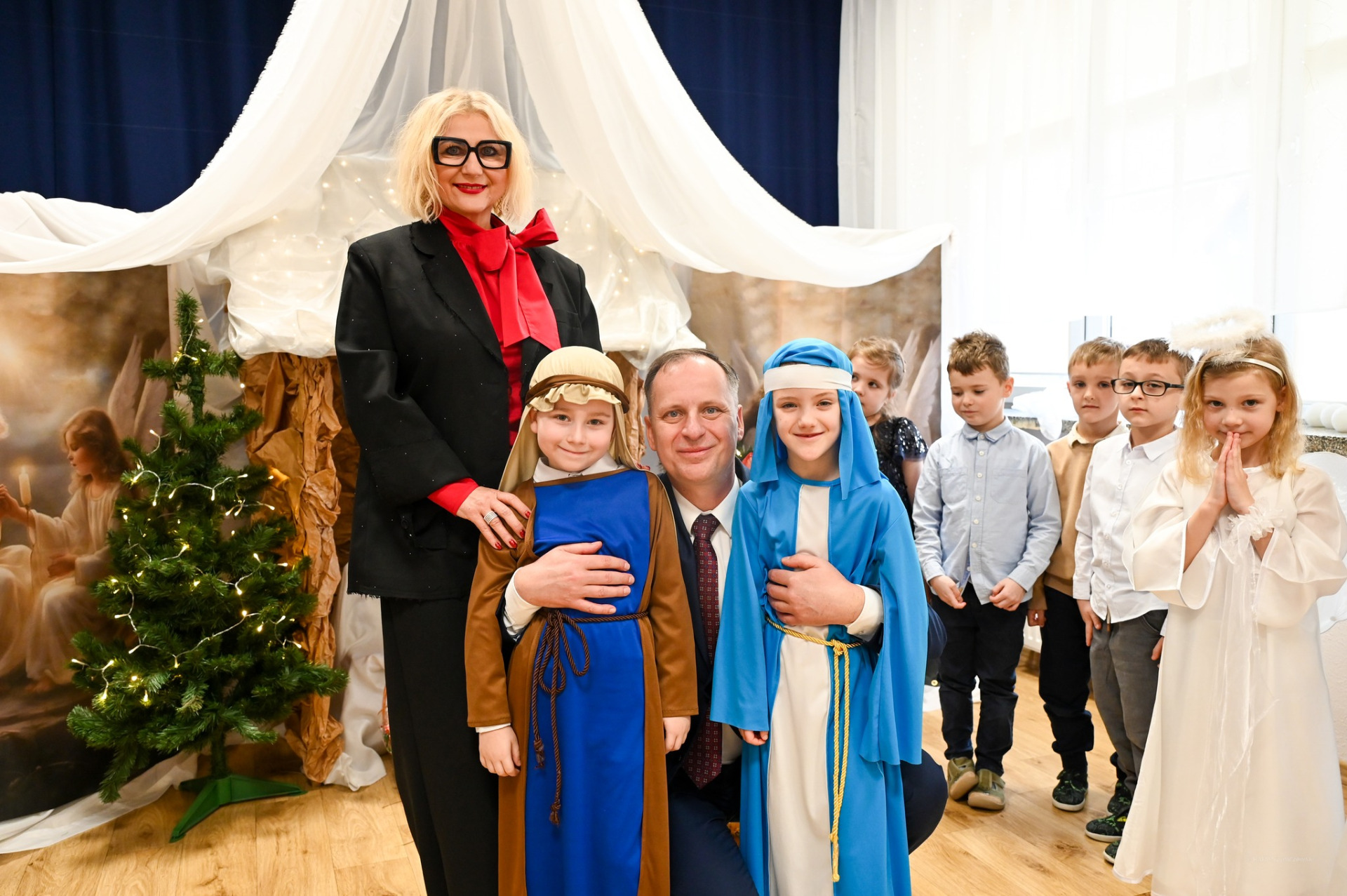 W wydarzeniu uczestniczyli także zaproszeni goście, m.in. Krzysztof Frankenstein - burmistrz Sławna oraz Marzena Łużyńska - Przewodnicząca Rady Miejskiej, którzy złożyli dzieciom, nauczycielom i wszystkim obecnym serdeczne życzenia świąteczne. Dziękujemy za wzruszające występy, świąteczną atmosferę i wspólnie spędzony czas.