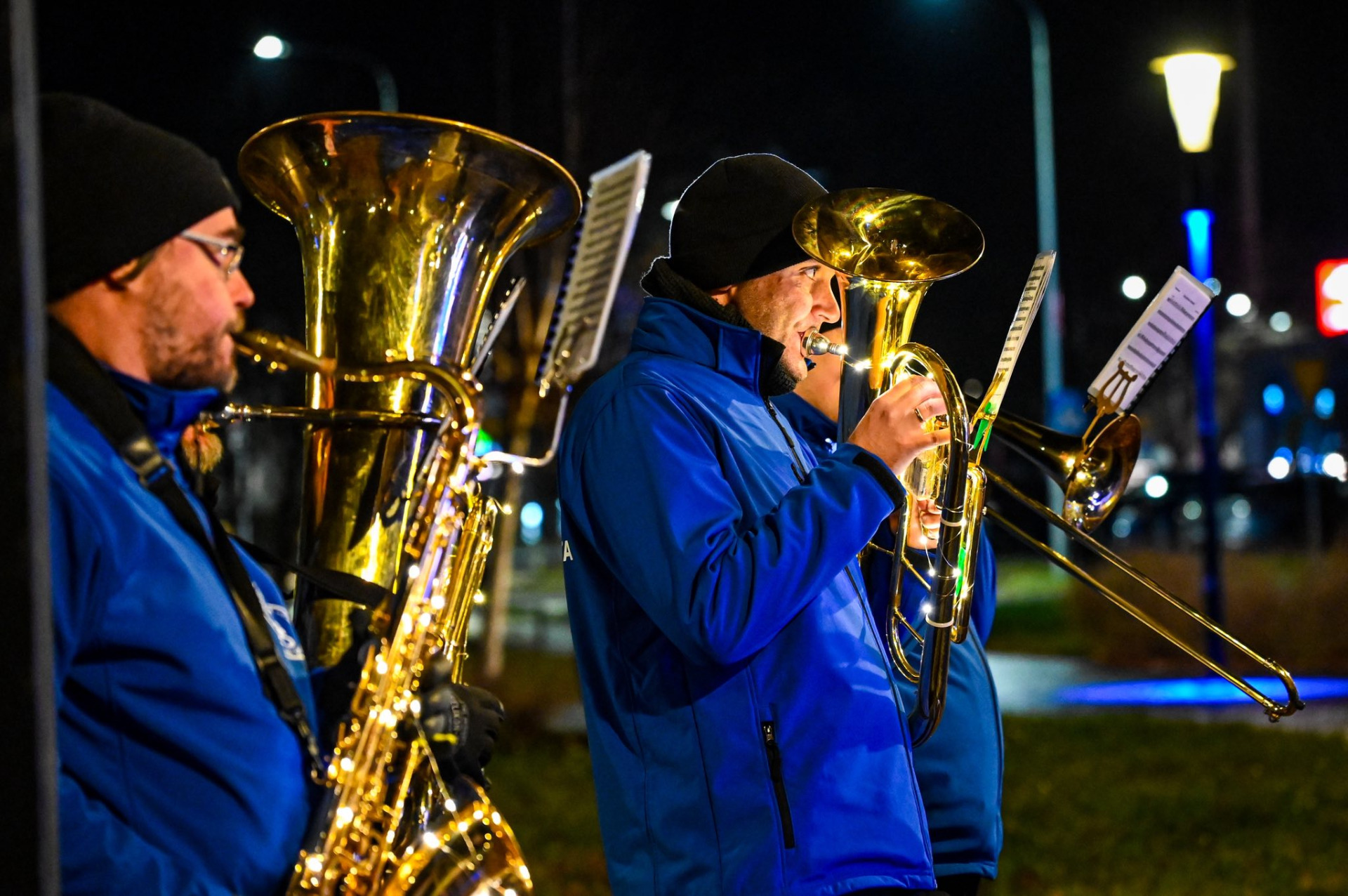 Mieszkańcy zgromadzili się w trzech punktach miasta, by razem z Orkiestrą Dętą im. Ziemi Sławieńskiej celebrować magię Bożego Narodzenia. Orkiestra zaprezentowała bogaty repertuar utworów świątecznych — zarówno klasycznych melodii, jak i lżejszych, radosnych aranżacji, które były świetną oprawą do wspólnego śpiewania. Publiczność nagradzała wykonawców gromkimi brawami, a wielu mieszkańców nie kryło wzruszenia na dźwięk dobrze znanych melodii.