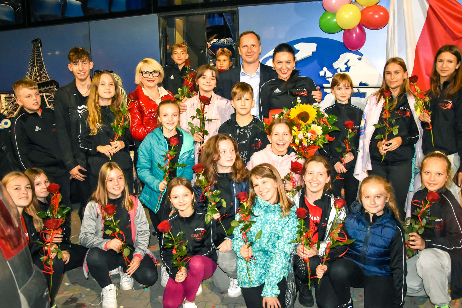 Na wracający do Sławna zespół czekali licznie zebrani rodzice oraz władze Sławna - Krzysztof Frankenstein - burmistrz Sławna oraz Marzena Łużyńska - Przewodnicząca Rady Miejskiej w Sławnie, którzy pogratulowali uczestnikom zdobytych nagród. Całemu zespołowi gratulujemy i dziękujemy!
